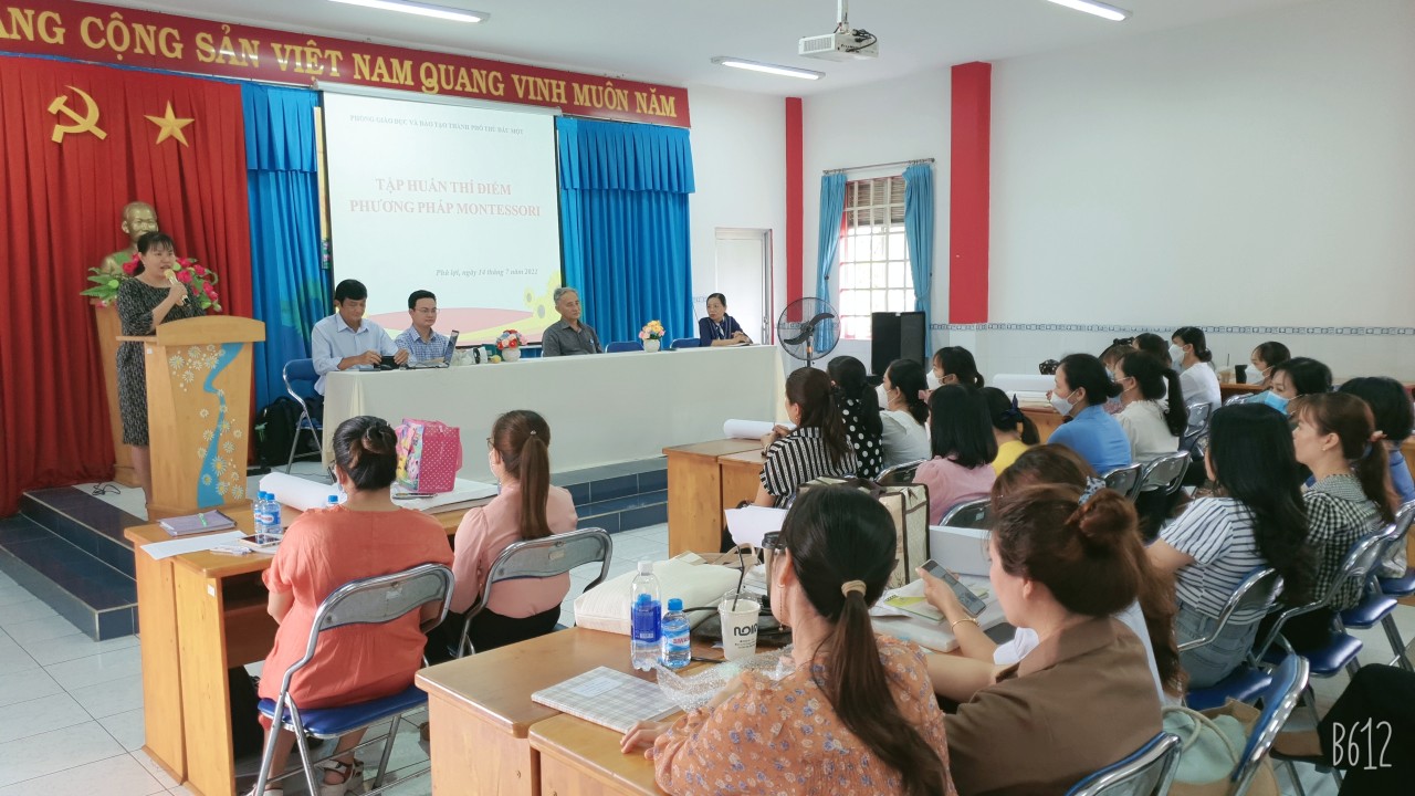 Thực hiện công số 874/PGDĐT-GDMN ngày 11 tháng 7 năm 2022 của Phòng Giáo dục và Đào tạo thành phố Thủ Dầu Một về viêc thực hiện thí điểm và triêu tập tập huấn phương pháp dạy học Montessori trong chương trình Giáo dục mầm non. Trong 2 ngày 14-15/ 07/2022, CBQL và đội ngũ giáo viên trường Mầm non Tuổi Ngọc được tham dự lớp tập huấn phương pháp Giáo dục Montessori.